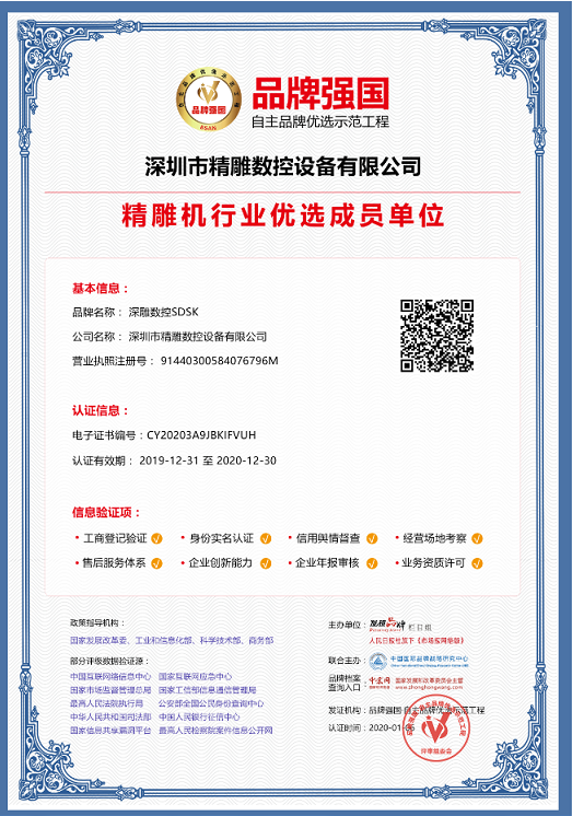 深圳市精雕數(shù)控設備有限公司2020年正式加入(品牌強國)自主品牌優(yōu)選示范工程