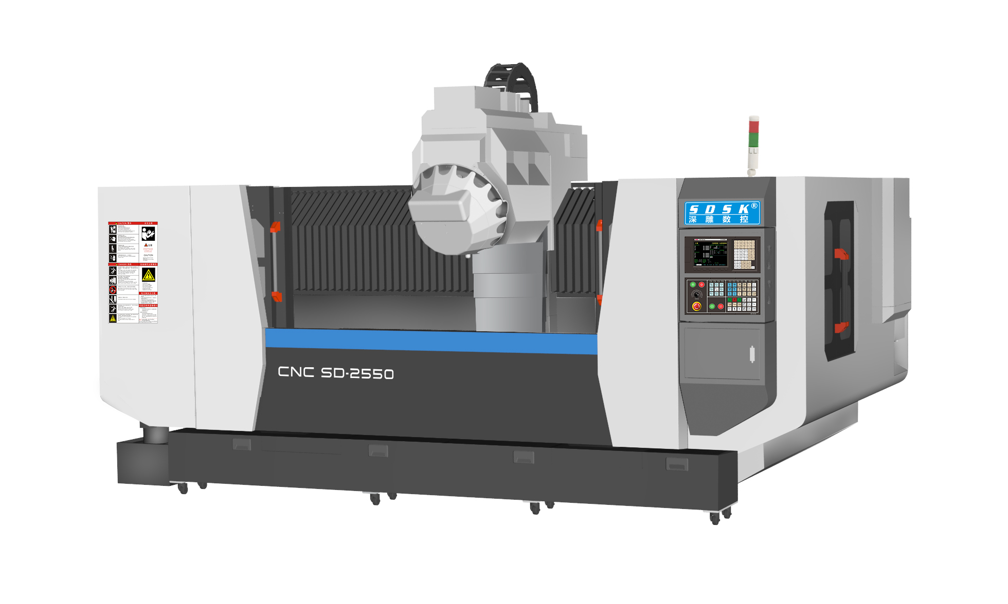 SD2550機(jī)型是專門為客戶量身定做的大型鋁型材鉆攻加工中心; 運(yùn)動(dòng)方式為Y軸工作臺(tái)前后移動(dòng),X軸機(jī)頭左右移動(dòng),Z軸主軸上下移動(dòng)。臺(tái)灣圣杰16位夾臂式刀庫,換刀速度為2秒,大大提高生產(chǎn)效率; 采用三菱數(shù)控系統(tǒng);機(jī)身為鑄鐵結(jié)構(gòu);三軸采用臺(tái)灣上銀P級(jí)直線導(dǎo)軌,研磨級(jí)滾珠絲桿,德國聯(lián)軸器,三菱伺服電機(jī),先進(jìn)的主軸制冷系統(tǒng),自動(dòng)潤(rùn)滑系統(tǒng),冷卻液循環(huán)噴水系統(tǒng),保證了更高的加工精度、速度與穩(wěn)定性;;特別適用于各類鋼、銅、鋁、壓克力、塑料等零件的精密雕銑、鉆孔、攻牙加工。