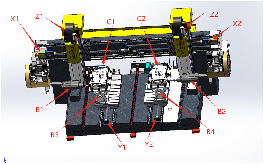 數(shù)控系統(tǒng)(雙頭雙通道);(品牌廠家待確認(rèn)) X1X2軸(型號(hào)待確認(rèn))伺服電機(jī); Y1Y2軸(型號(hào)待確認(rèn))伺服電機(jī); Z1Z2軸(型號(hào)待確認(rèn))伺服電機(jī)、帶抱閘; B1B2軸(型號(hào)待確認(rèn))伺服電機(jī)、帶抱閘; B3B4軸(型號(hào)待確認(rèn))伺服電機(jī)、帶抱閘; C1C2軸(型號(hào)待確認(rèn))伺服電機(jī)、帶抱閘; 2-主軸電機(jī)15-18000; |
