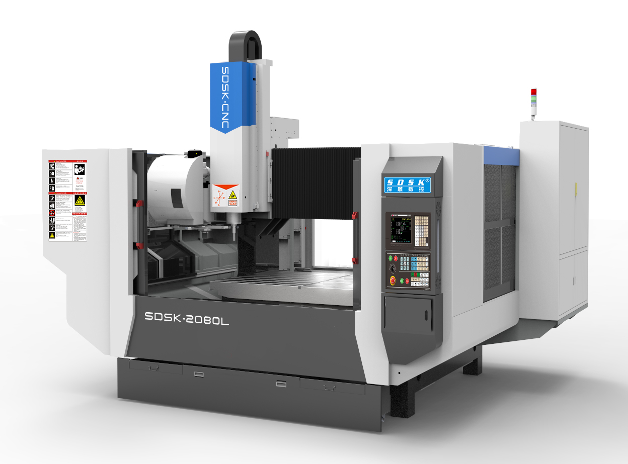 The SDSK-L model series is a lightweight gantry machining center specially designed for customers; Equipped with Taiwan Shengjie 24 position knife arm type knife magazine; The tool changing speed is 2 seconds; The movement mode is to move the Y-axis workbench forward and backward, the X-axis machine head moves left and right, and the Z-axis moves up and down. The body adopts top-notch Jinan granite (marble) structure, which never deforms; Three axis adopts imported Taiwan Shangyin precision linear guide rail, Taiwan TBI; Grinding grade ball screw, German coupling, servo motor, distribution cabinet thermostatic system, advanced spindle refrigeration system, automatic lubrication system, coolant circulating water spray and spray system, air filter device, ensure higher processing accuracy, speed and stability; Specially suitable for precision carving, milling, friction stir welding, drilling, and tapping of various types of steel, copper, aluminum, acrylic, plastic and other parts< Br/>
