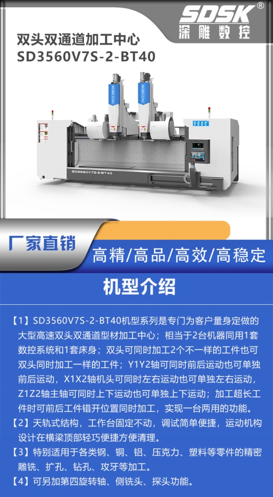 天軌式雙頭雙通道加工中心詳細參數(shù)